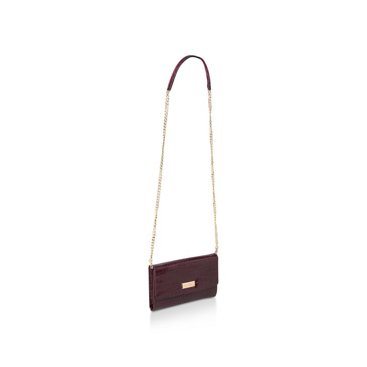 Reinvent go-to after-dark looks by adding Favour Chain Purse into the mix. Created by Carvela, this clutch arrives in wine with a crocodile structure and a delicate two-part gold chain strap making it the perfect evening cross body.