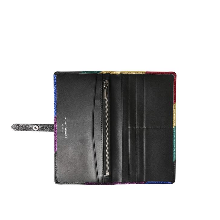 Softly structured and loaded with organisational options, Kurt Geiger London's Leather Soft Wallet makes an irresistible update for your collection. Featuring subtle embossed logo, leather tab closure and polished silver trims. Height: 10.5cm Width: 19.5cm Depth: 2cm.