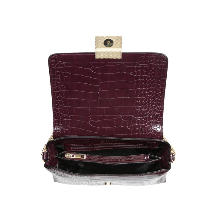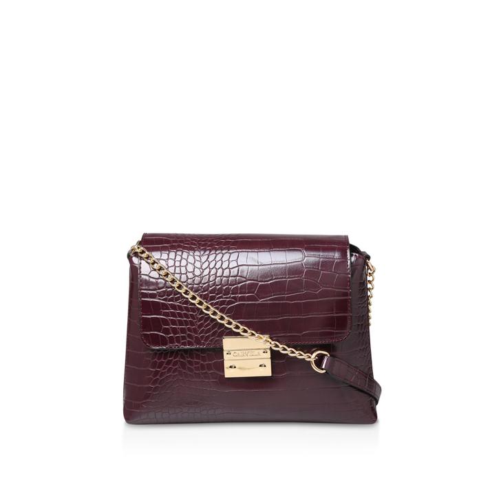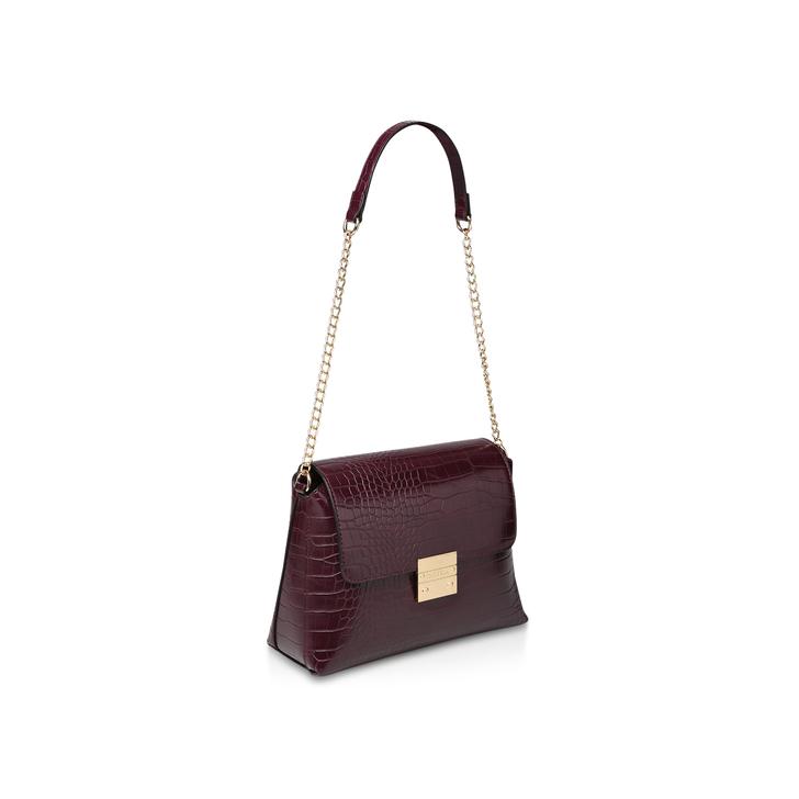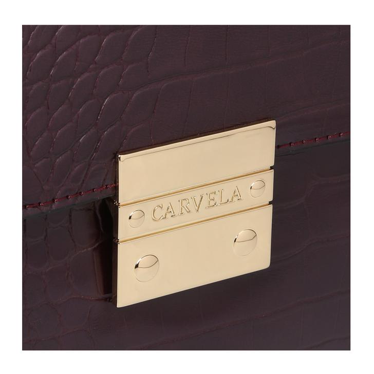 Following the success of her predecessor, Blink Chain Handle Bag is back in versatile wine to offer your working week a trending touch. Mixing dark red and tonal crocodile, this compact Carvela handbag secures with a gold-tone fitting.