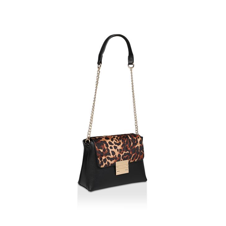 Downscaling the popular Blink silhouette for those who prefer a more bijou accessory, Carvela's Mini Blink Shoulder Bag offers the same boxy shape, signature chain strap and golden clasp, with a leopard print fold over flap adding extra style cred.