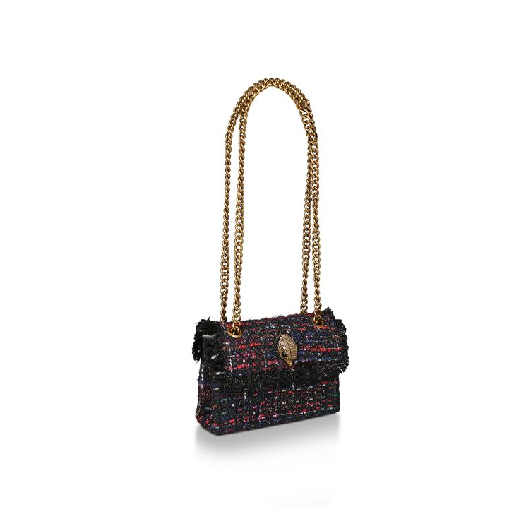 Make every day a little more chic with Kurt Geiger London's contemporary Tweed Mini Kensington X Bag. In a red and blue fabric combination upper, this compact handbag swings from a chain strap for must-have style, finished with the iconic Kensington eagle embellishment. Height: 13cm Width: 18.5cm Depth: 5.5cm.