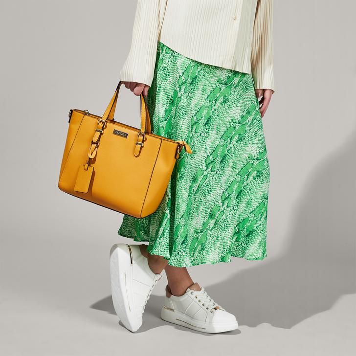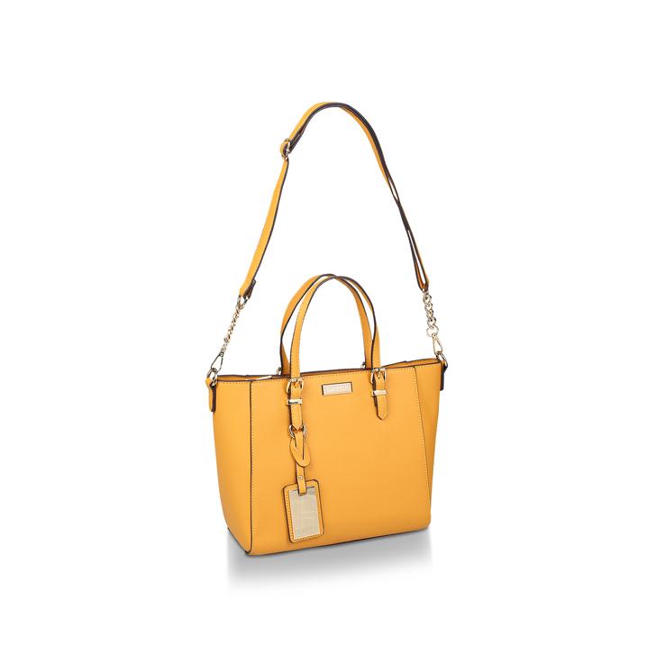 Carvela puts a vibrant spin on the classic tote to bring you this bold design. Fan Winged Tote arrives in a season-favourite mustard hue and features a subtle chain insert at the strap and a luggage tag to give this style a chic twist.