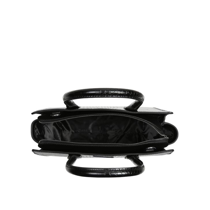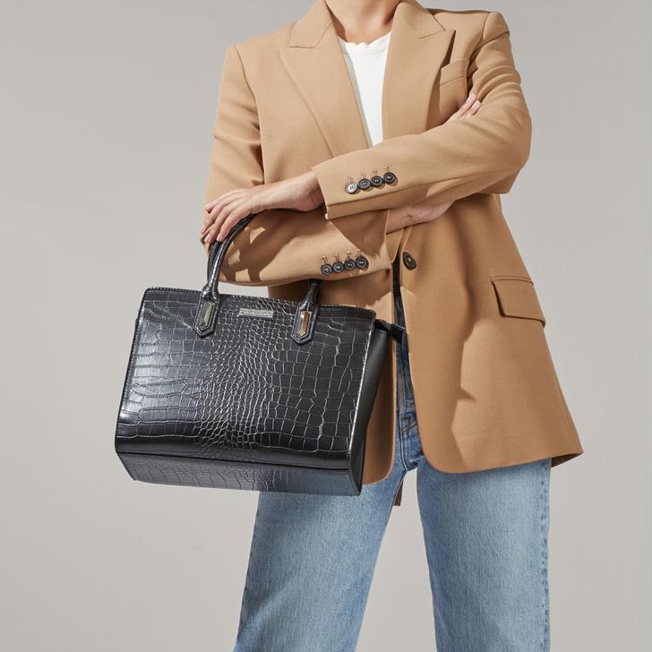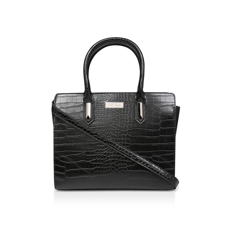 Pull together feminine daywear with a dash of black. Dory Structured Tote from Carvela embraces a croc effect outer with polished silver-tone hardware, elegant tube handles and an adjustable cross-body strap for versatility.