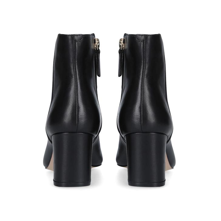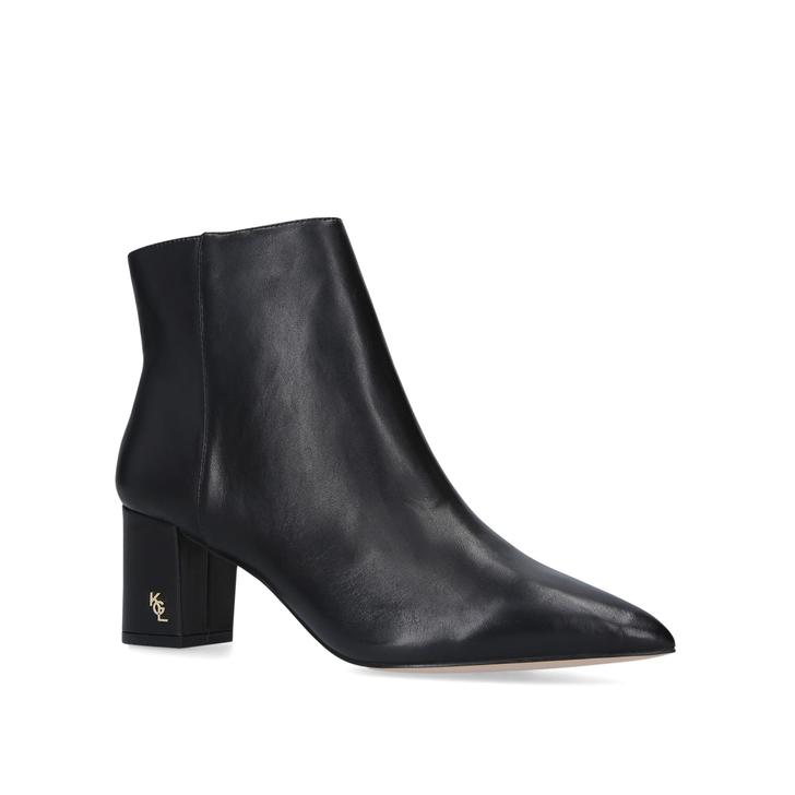 Designed with a black leather upper, Burlington Ankle Boot adds fierce attitude to any look. Brought to you by Kurt Geiger London, this ankle boot is styled with a feminine pointed toe and a block 60mm heel with a branded pin.