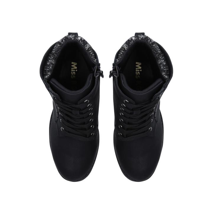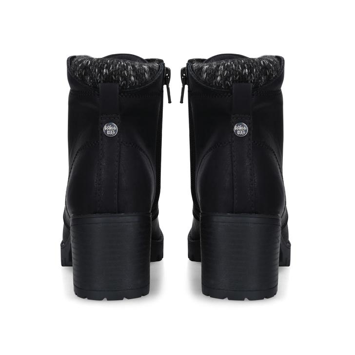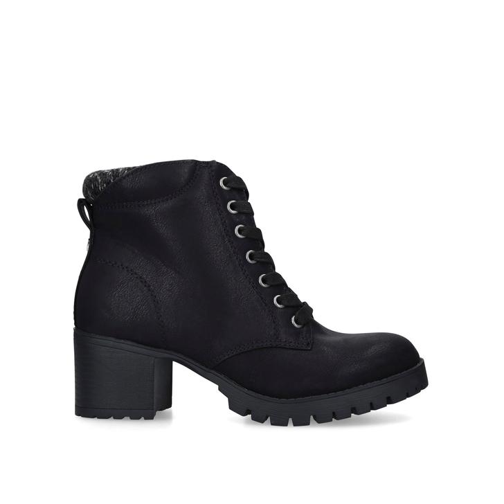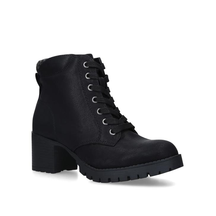 Opt for trending comfort with Miss KG's take on the essential lace-up ankle boot. Joss is designed in black, built on a cleated outsole with a chunky 80mm heel, and topped with a cushioning collar at the ankle for day-long wearability.