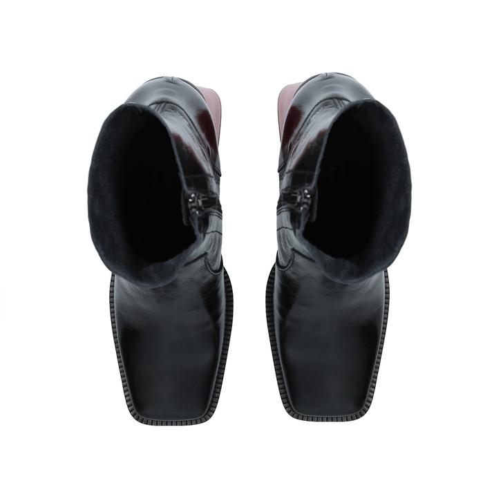 Black Patent Flared Heel Boots