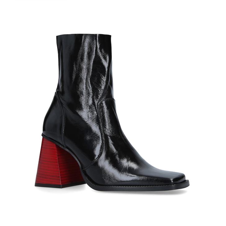 Add a touch of pride to your sartorial stride with Selma from Kurt Geiger London. Arriving in smooth patent black leather, this update on the classic calf boot features an 85mm flared red heel and a squared toe.