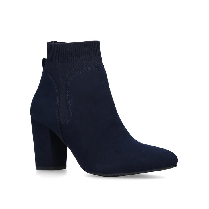 Navy Block Heel Ankle Boots