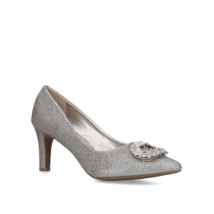 Delivered in silver to team easily with occasion and evening looks, Anne Klein's Gael is a versatile choice. Resting on a low 75mm heel, this court shoe features a sparkling jewel detail at the vamp to inject an extra touch of luxury.