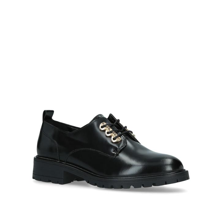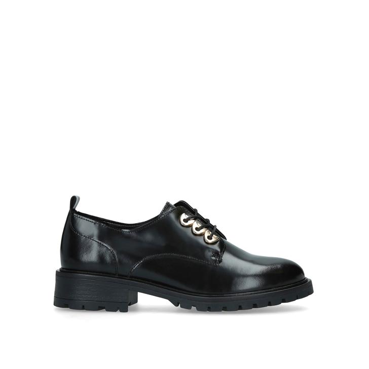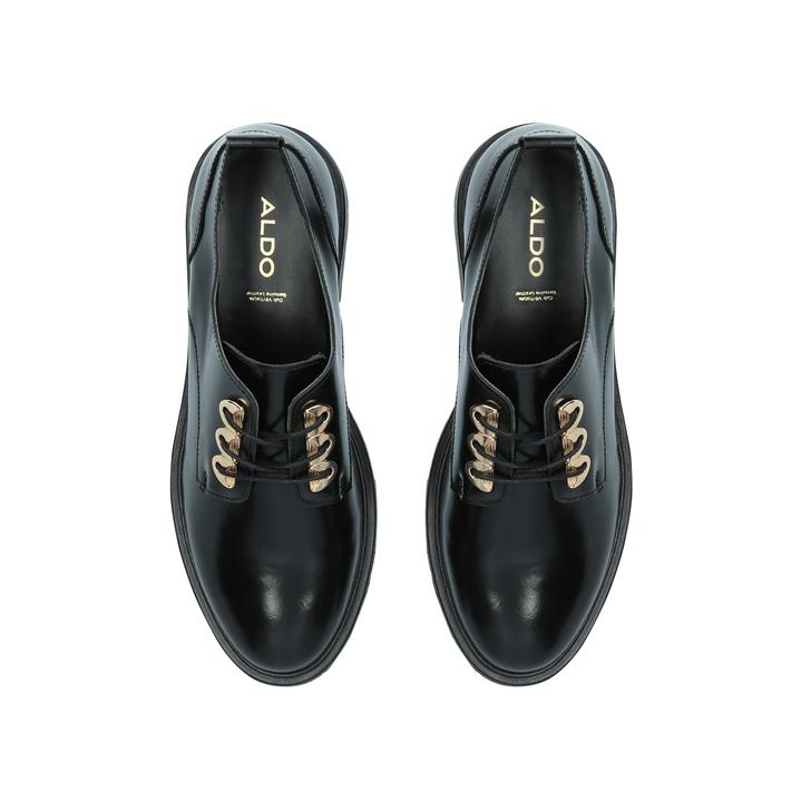 Created by ALDO, this lace-up shoe sits on a chunky black sole with a low heel and features a black patent upper with polished eyelets for eye-catching appeal.