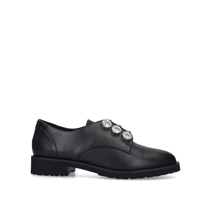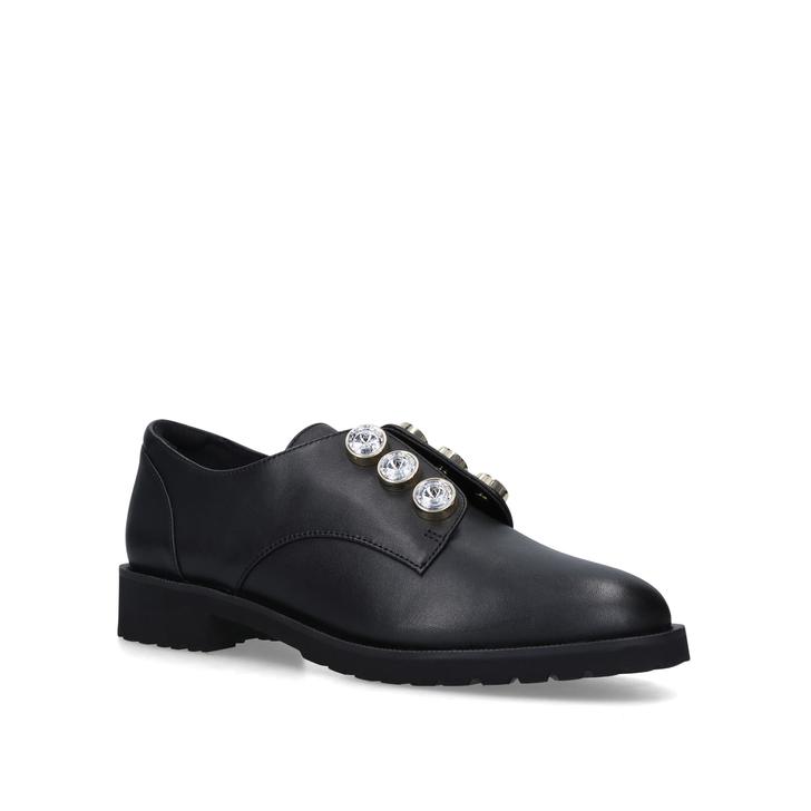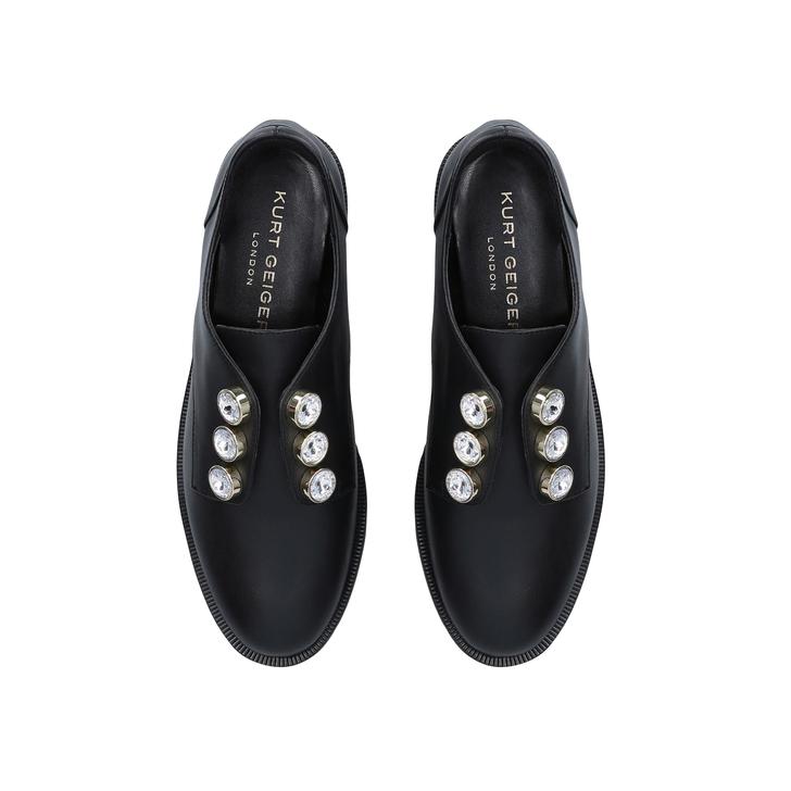 Created by Kurt Geiger London, this brogue shoe sits on a chunky black sole with a low heel and features statement embellished studs for eye-catching appeal.