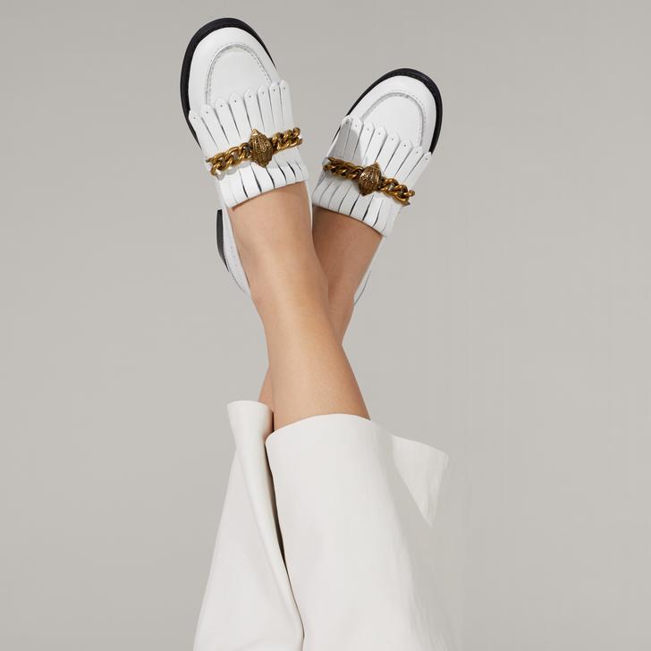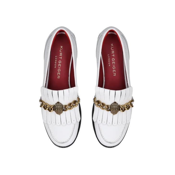 Kurt Geiger London presents a contemporary spin on a wardrobe favourite: Chelsea Formal Loafer is styled with a white coloured upper and finished with the brand's iconic eagle emblem set on a chain highlight to reinforce its designer credentials.