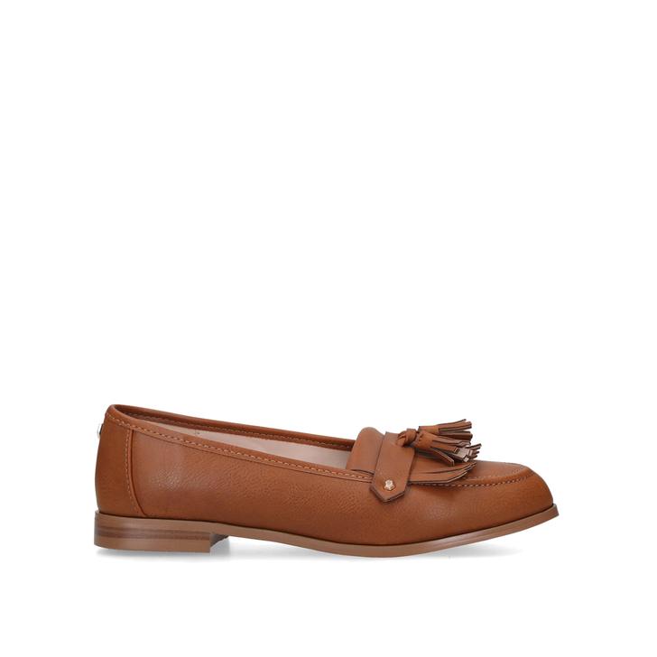 Lovers of loafers won't be able to resist Magpie by Carvela. Perfect for adding a dose of luxury to your everyday look, this tan loafer is trimmed with a refined tonal tassel at the toe.