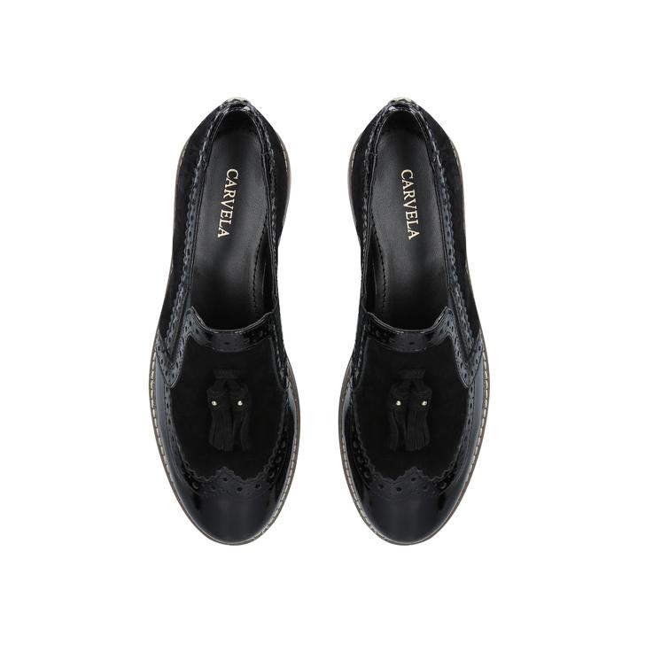 Shake up your officewear with Carvela's latest take on the dapper loafer. Maker is designed in a rich black hue with a fun tassel at the toe and a pumped up contrast sole for new season edge.