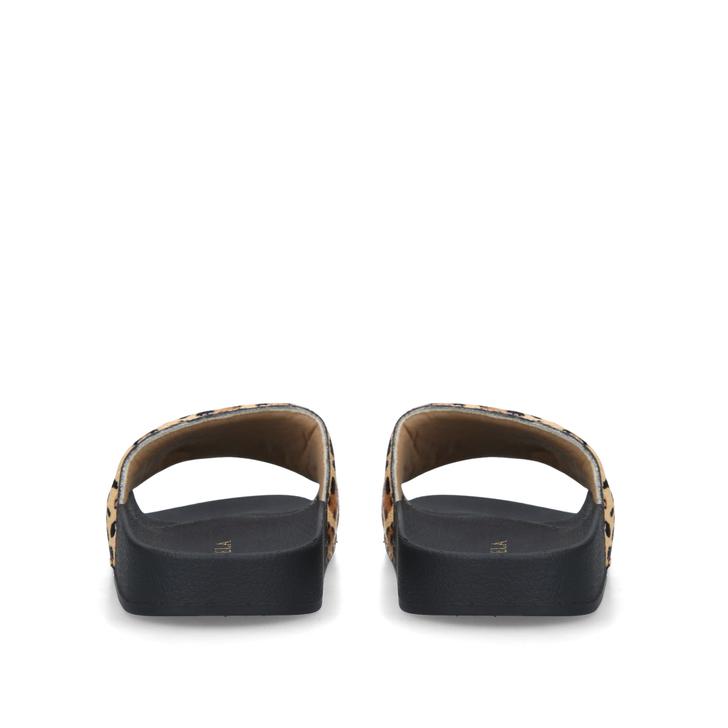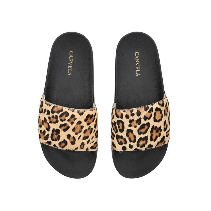Indulge your passion for animal print with Carvela's covetable Bite style, perfect with anything from daytime denim to after-dark high hemlines. This easygoing slider features a contoured sole in black and colourful leopard print at the upper strap.