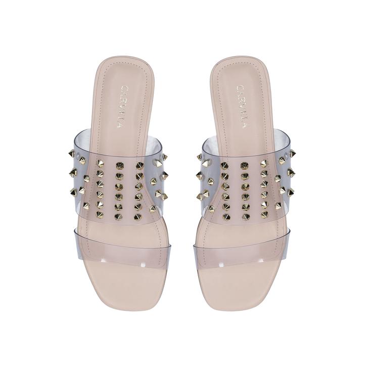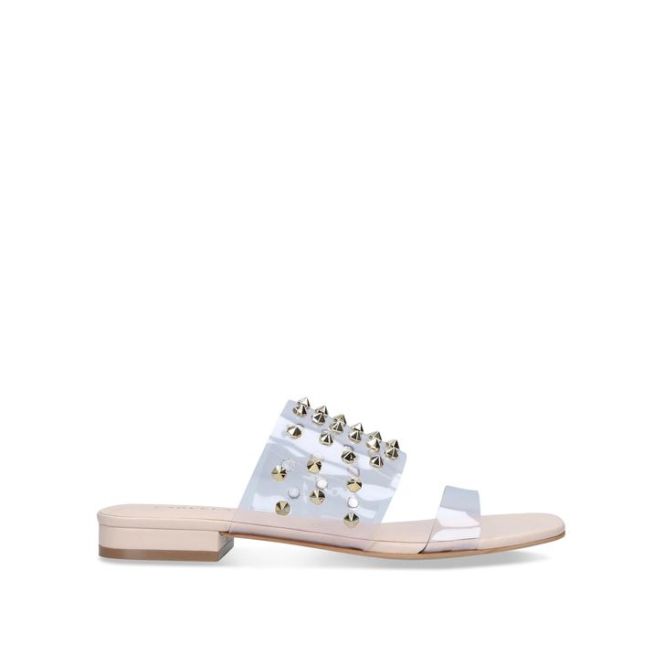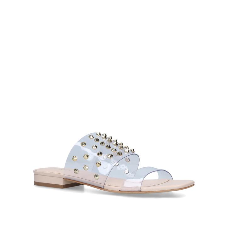 The edgiest sandal on the shelves, Kruel by Carvela mixes up a nude construction with perspex upper straps dotted with fierce gold-tone studs.