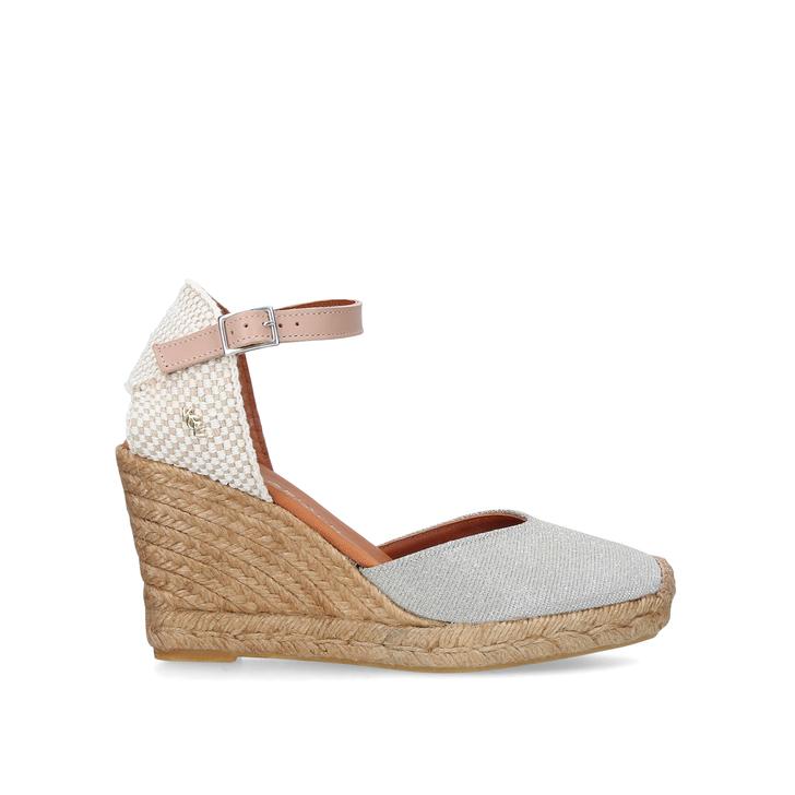 Nail daytime glamour with Monty by Kurt Geiger London. Set on a 90mm espadrille wedge with a round silver toe and a delicate ankle strap, this summery style works with everything from cropped skinnies to a floaty floral number.