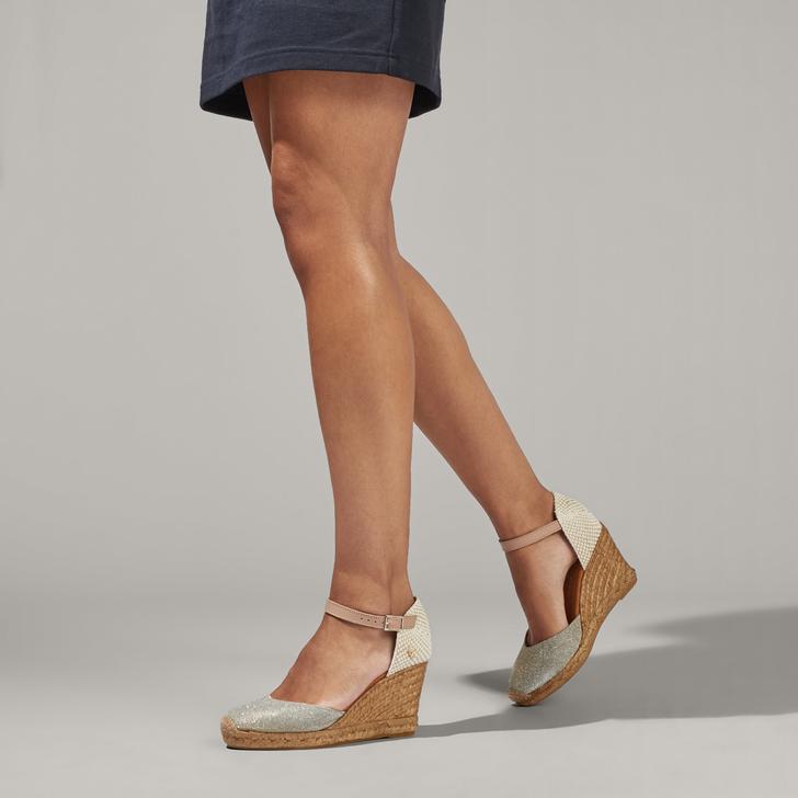 Metallic Silver Espadrille Wedge Sandals