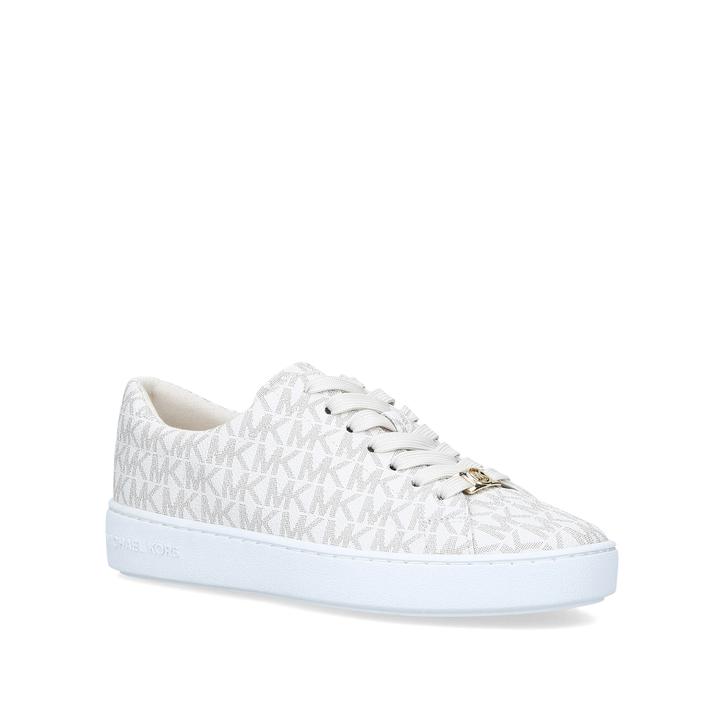 Styled by MICHAEL Michael Kors, the Keaton Sneaker already looks set to hit bestseller status. With a branded cream upper and a hardware embellishment at the counter, this low-top trainer sits on a pumped-up white sole with subtle logo detailing.