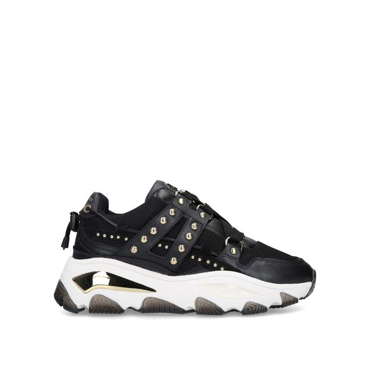 The Lettie trainer is Kurt Geiger London's latest offering for your athleisure collection. With a white chunky cleated sole and lace closure, this chunky design features KGL branding at the tongue and gold-tone stud embellishments for new-season appeal.