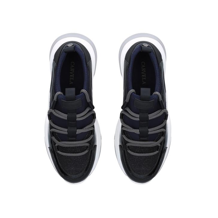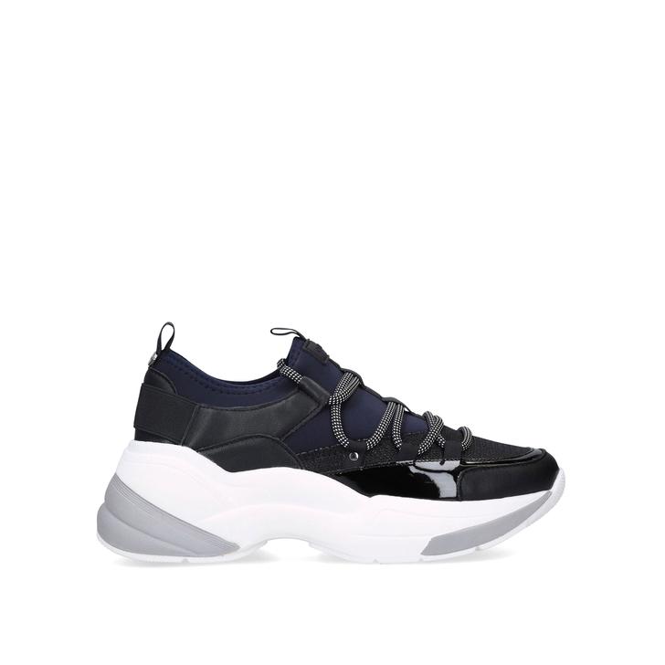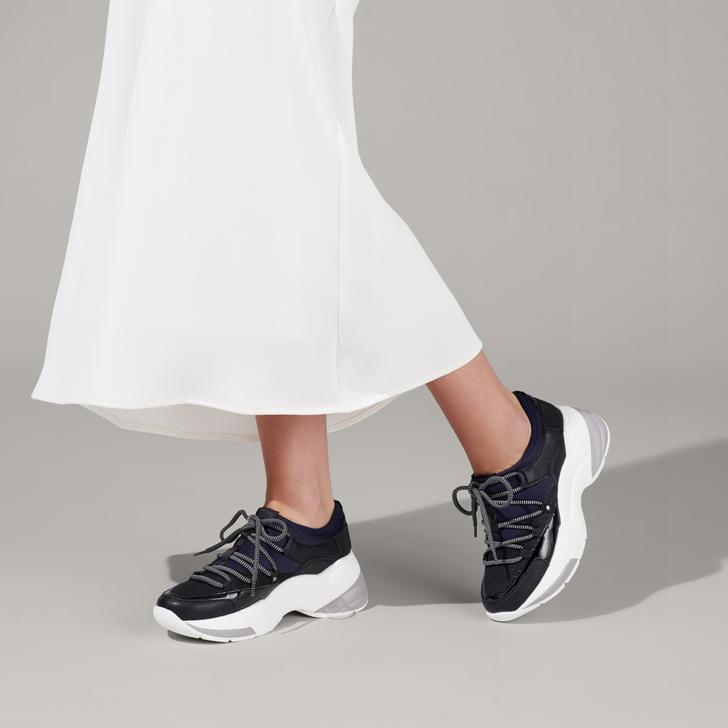 Grab a slice of the chunky trainer action with Carvela's Liberal style. Blending navy neoprene and black textured panels, this mostly monochrome pumped-up trainer is built on a chunky white sole, developed exclusively in house.
