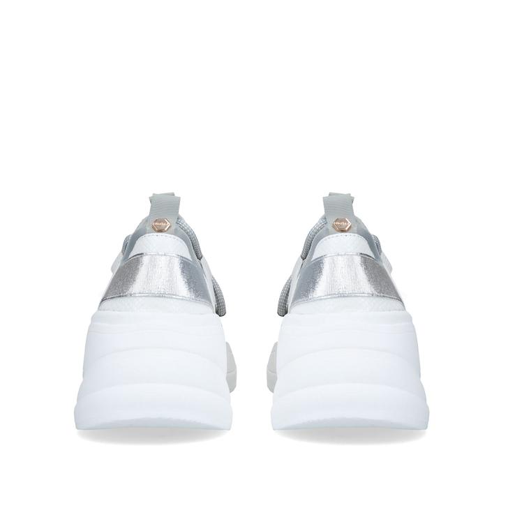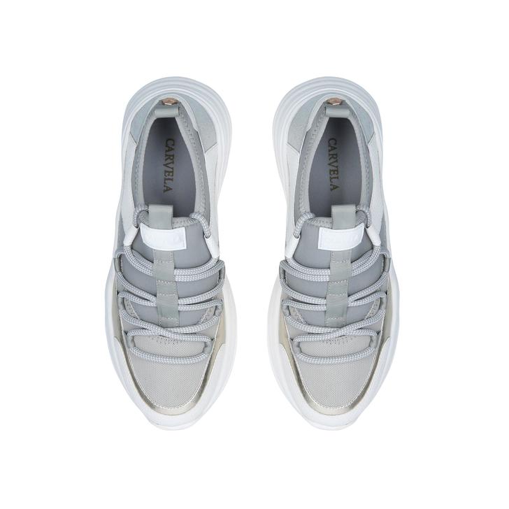 Grab a slice of the chunky trainer action with Carvela's Liberal style. Blending grey neoprene and silver metallic detailing, this mostly monochrome pumped-up trainer is built on a chunky white sole, developed exclusively in house.