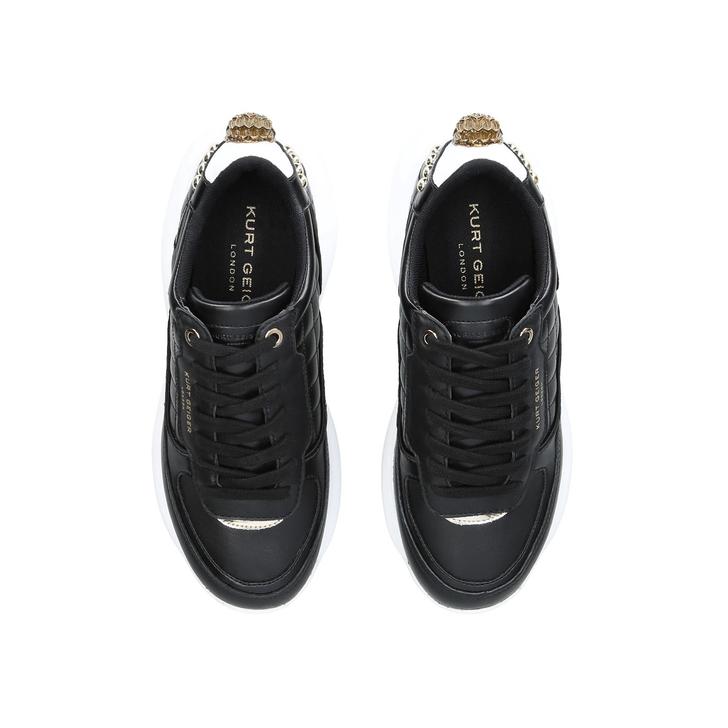 Featuring the brand's iconic eagle-head charm at the heel tab for unmistakable brand DNA, Lunar Eagle is a luxe interpretation of the low-top trainer. Styled by Kurt Geiger London, this modern trainer is designed with a quilted outer featuring branded lettering and sits on a chunky, pumped-up sole in white for contrast.
