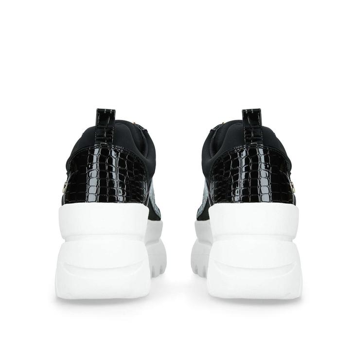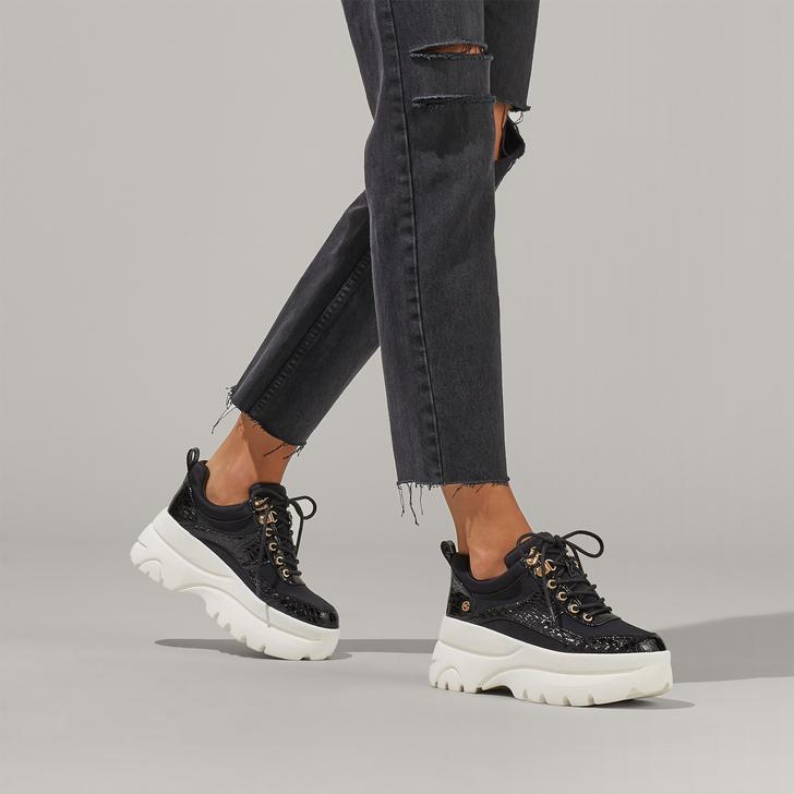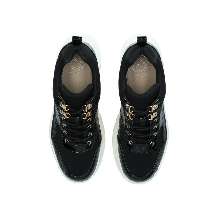 Luscious is KG Kurt Geiger's latest offering for your chunky trainer collection. With a cleated wedge sole, this chunky black design features croc-effect panels and the brands subtle iconic branding at the sides.