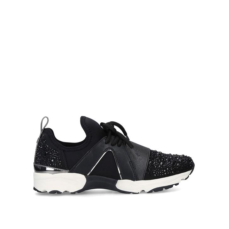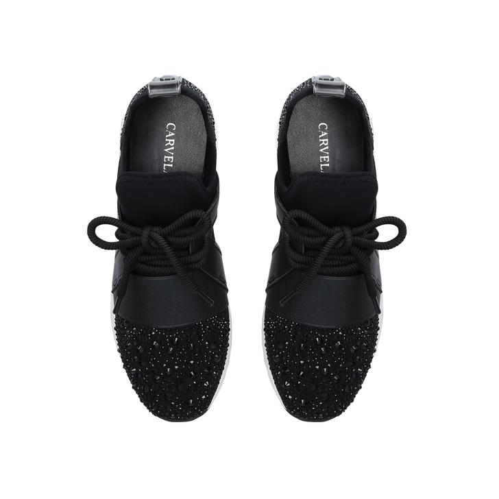 Put your best foot forward and encapsulate the current sports luxe trend with Lament Bling from Carvela. This black lace up runner brings sporty glamour to your trainer collection through an elasticated fit and embellishment, all set upon a sturdy, supportive crisp white sole.